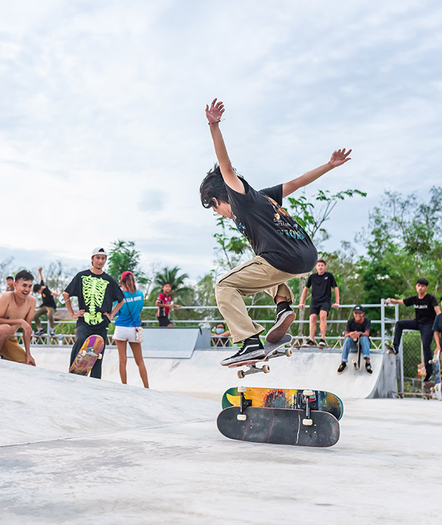 Perfect for beginners learning the ropes and pros seeking a high-quality venue alike, the welcoming atmosphere makes this park a true gathering place for Phuket’s skateboarding community.